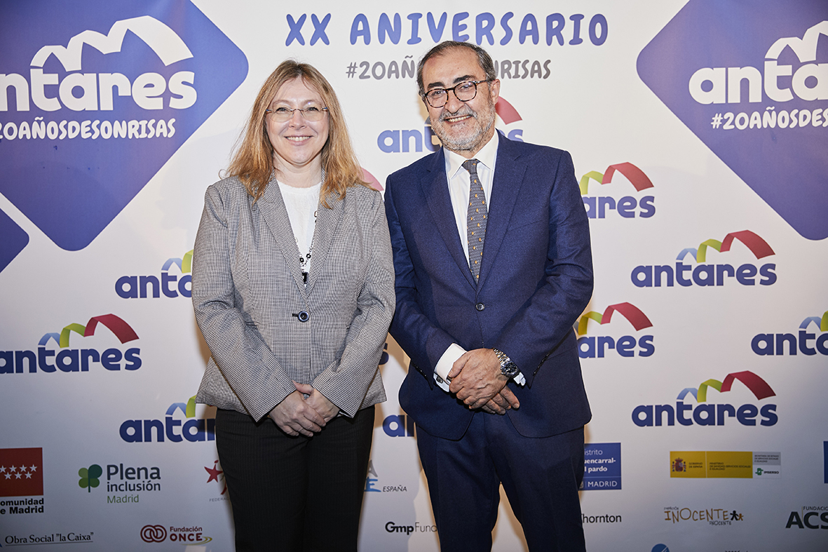 El XX aniversario de Antares estuvo marcado por un lado, por la visibilidad de las personas con discapacidad intelectual y grandes necesidades de apoyo a través de la participación de los usuarios de la entidad en la entrega de los reconocimientos y mediante la actuación final dirigida por Lara Mazzoni, musicoterapeuta de Antares y, por otro, por la participación de las familias cuidadoras a través de entrevistas y testimonios de algunas familias asistentes que pudieron contar en primera persona la situación a la que se enfrentan en su día a día y la necesidad de respiro cuando en el núcleo familiar existen una persona con discapacidad intelectual con grandes necesidades de apoyo. “Hoy especialmente queremos poner nuestra atención en las personas con discapacidad intelectual con más necesidades de apoyo. Nuestros hijos e hijas deben ser visibles, deben ser incluidas, porque nuestra experiencia como padres y como asociación nos ha enseñado que no hay barreras, que CON APOYOS, TODO ES POSIBLE.”, defendía Javier González, presidente de Antares que destacaba que “hoy, celebramos que 20 años después, seguimos aquí, generando sonrisas, más fortalecidos que nunca, con más experiencia que nunca, y muy orgullosos de haber llegado hasta aquí. También con ganas de seguir, y seguir, generando y compartiendo conocimiento, enfrentándonos a nuevos retos internos y los que se nos plantean desde fuera, trabajando bajo el principio de mejora continua, la transparencia y por supuesto, unidos”
