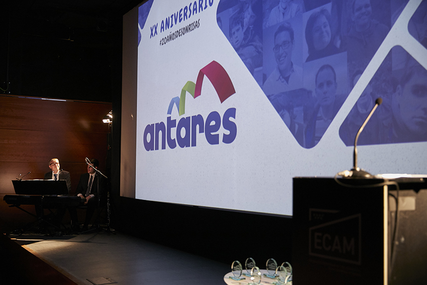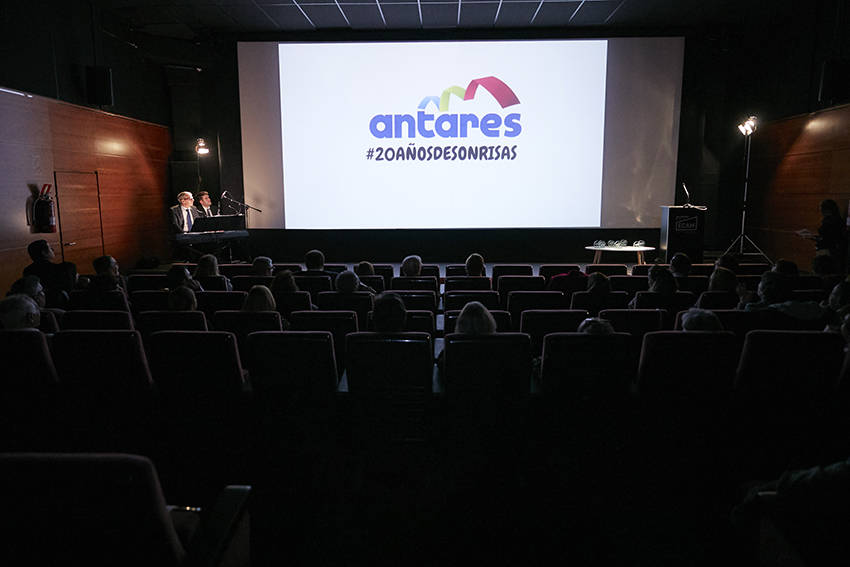 #20AñosDeSonrisas fue el eslogan elegido para llevar a cabo la celebración del XX Aniversario de Asociación Antares, un acto que reunió en la ECAM a los pilares de la entidad: instituciones, sector, familias, usuarios personas con discapacidad intelectual, equipo profesional y personas voluntarias.
